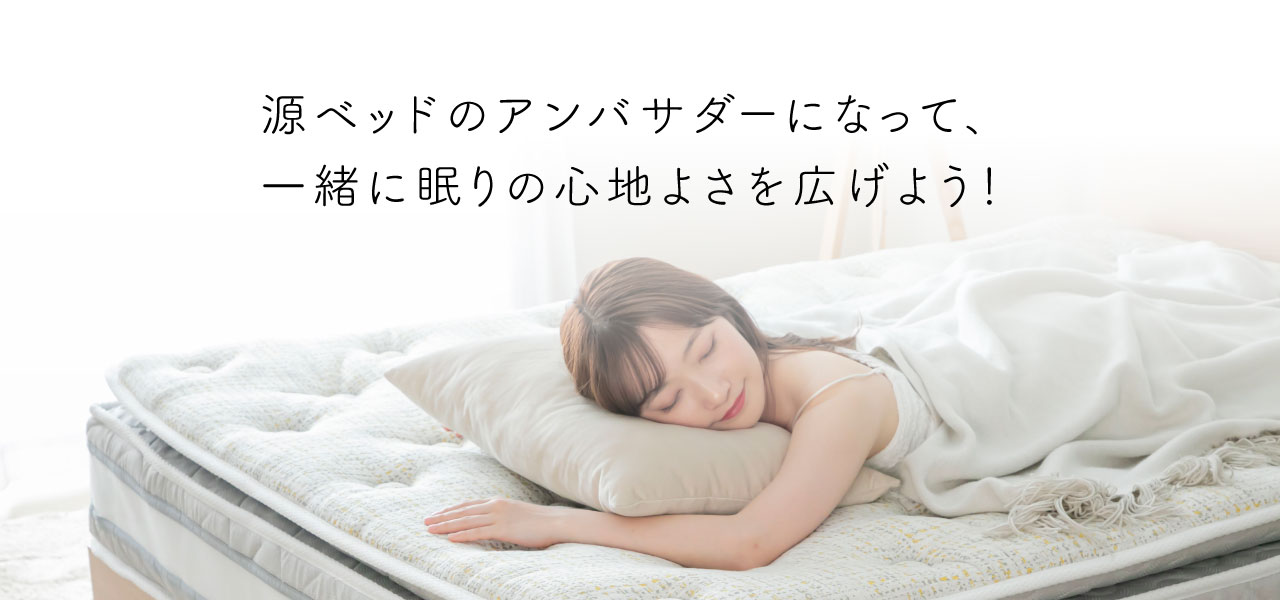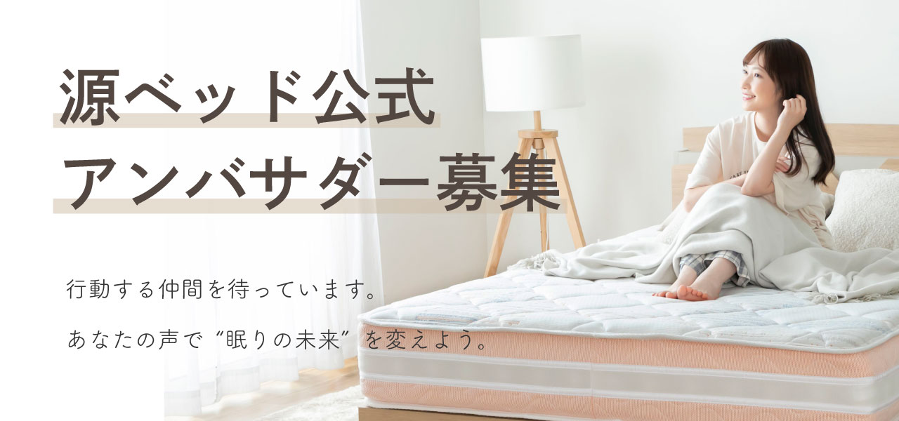 いつも源ベッドをご愛用いただきありがとうございます。このたび、私たちのマットレスやベッドの魅力を一緒に発信してくださる「公式アンバサダー」を募集いたします。ぜひあなたの声で、源ベッドの良さを広めてください。