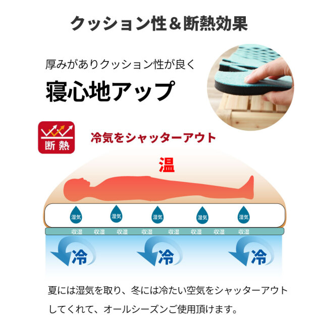 スノコ型吸湿マット シングル AirJob Plus 備長炭入り スノコベッドや収納ベッドとの相性が良い除湿マットです カビ防止にも効果あり