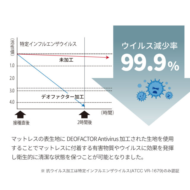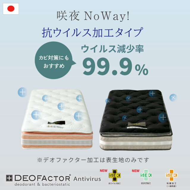 | 製品名: | 咲夜NoWay! デオファクター 抗ウイルス 抗カビ 制菌加工モデル 衛生マットレス |